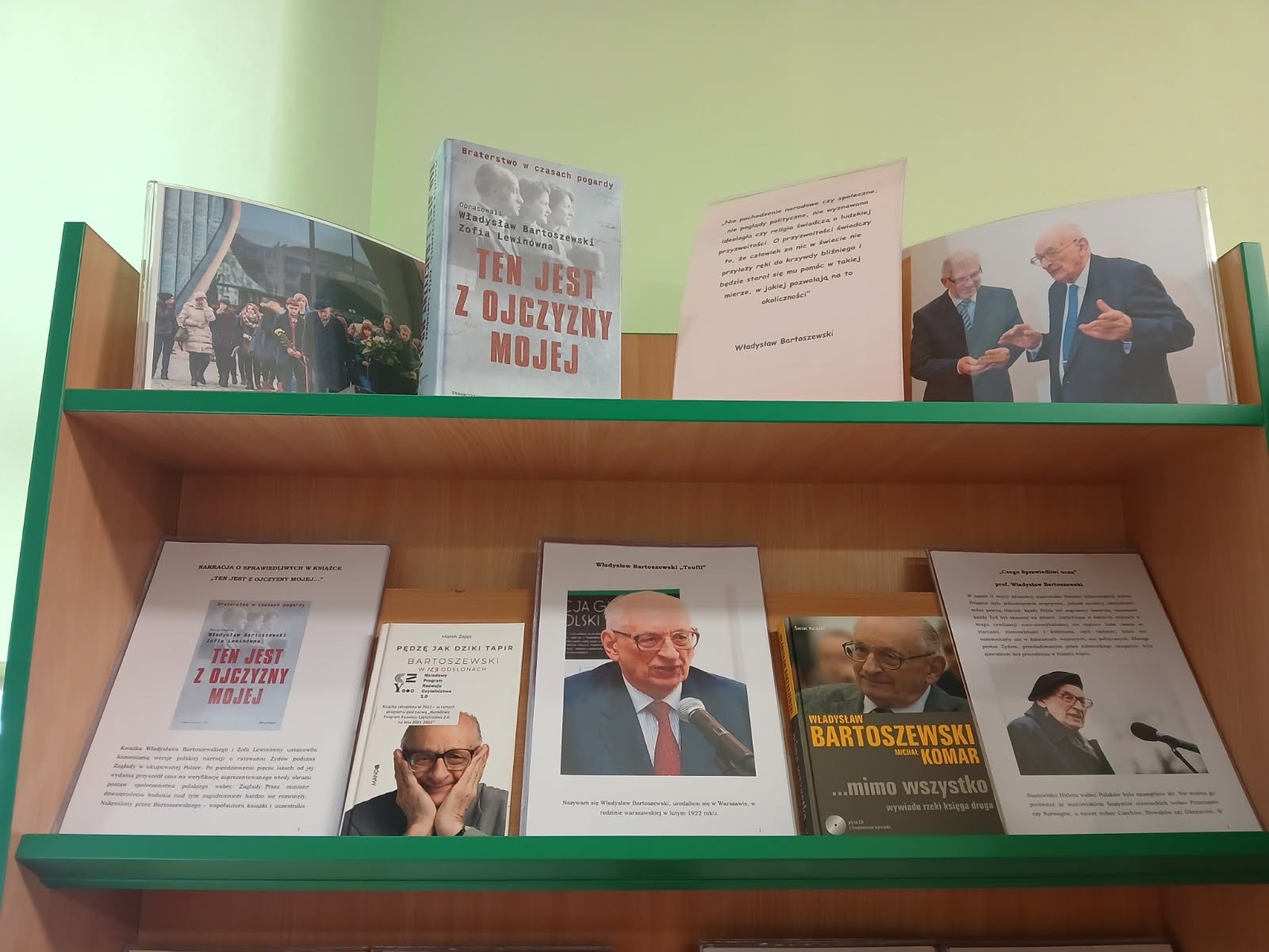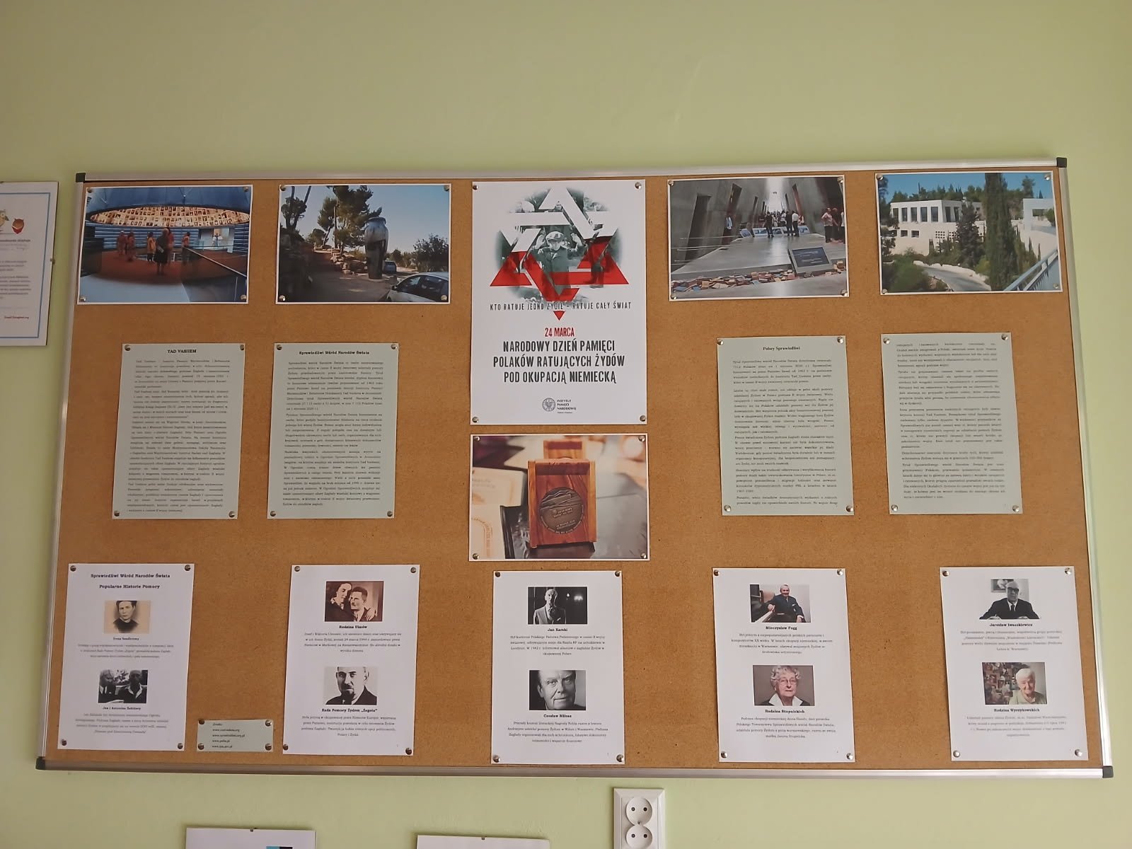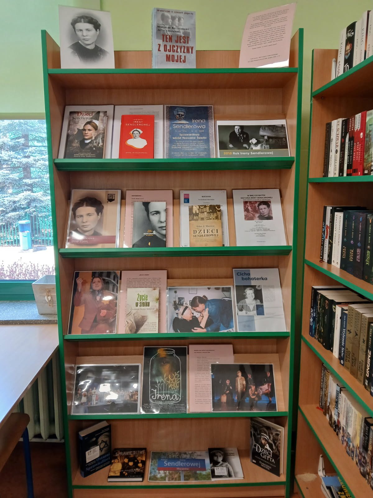 W bibliotece szkolnej przypominamy bohaterów, którzy w akcie heroicznej odwagi, niebywałego męstwa, współczucia i solidarności międzyludzkiej, wierni najwyższym wartościom etycznym oraz nakazom chrześcijańskiego miłosierdzia ratowali swoich żydowskich bliźnich od Zagłady. W tym roku przygotowaliśmy wystawę okolicznościową poświęconą Irenie Sendlerowej – polskiej społeczniczce, zaangażowanej w ratowanie żydowskich dzieci, uhonorowanej tytułem Sprawiedliwej wśród Narodów Świata.