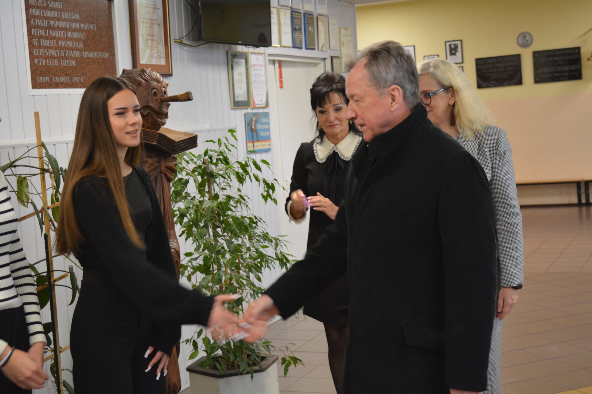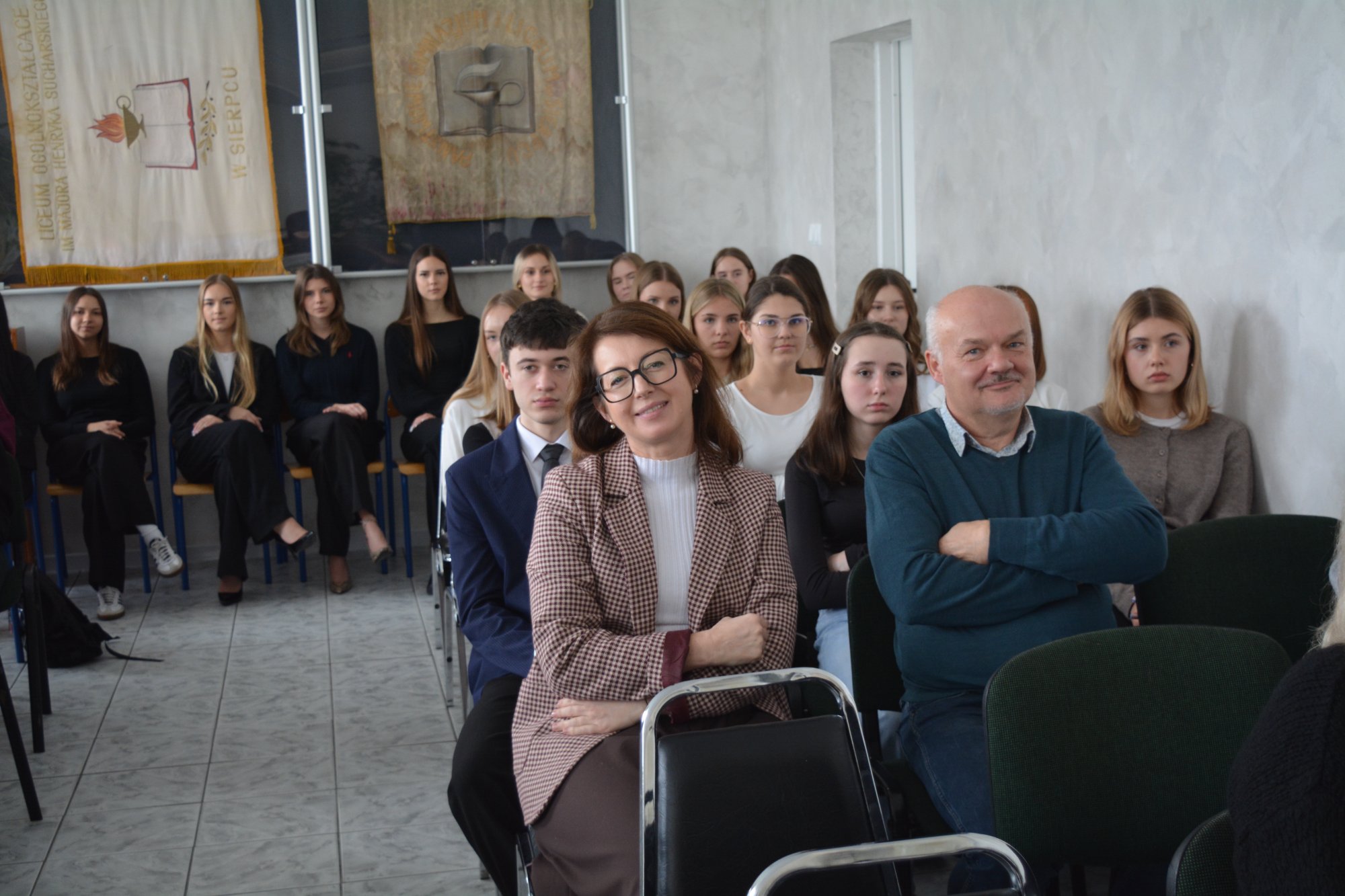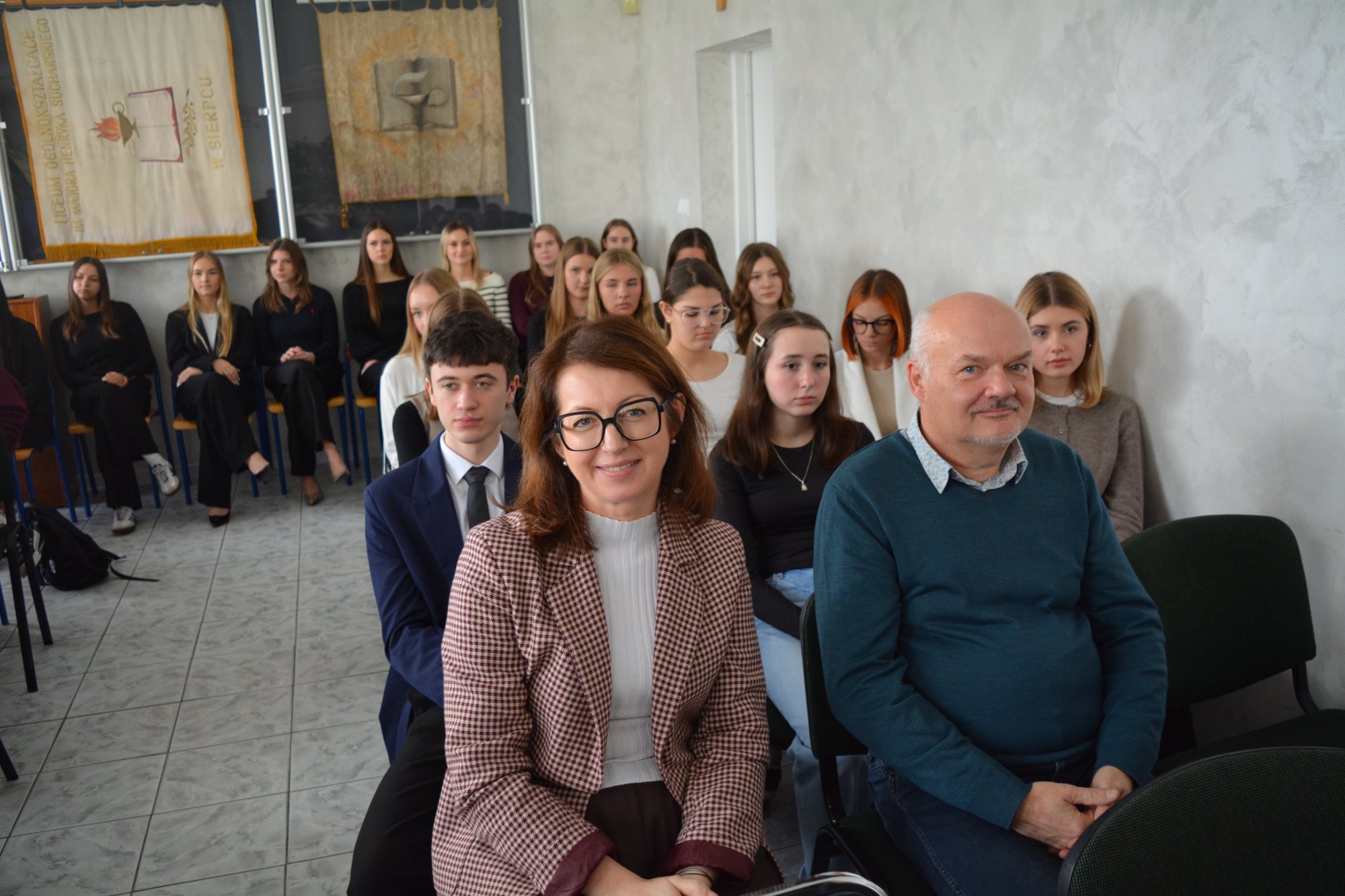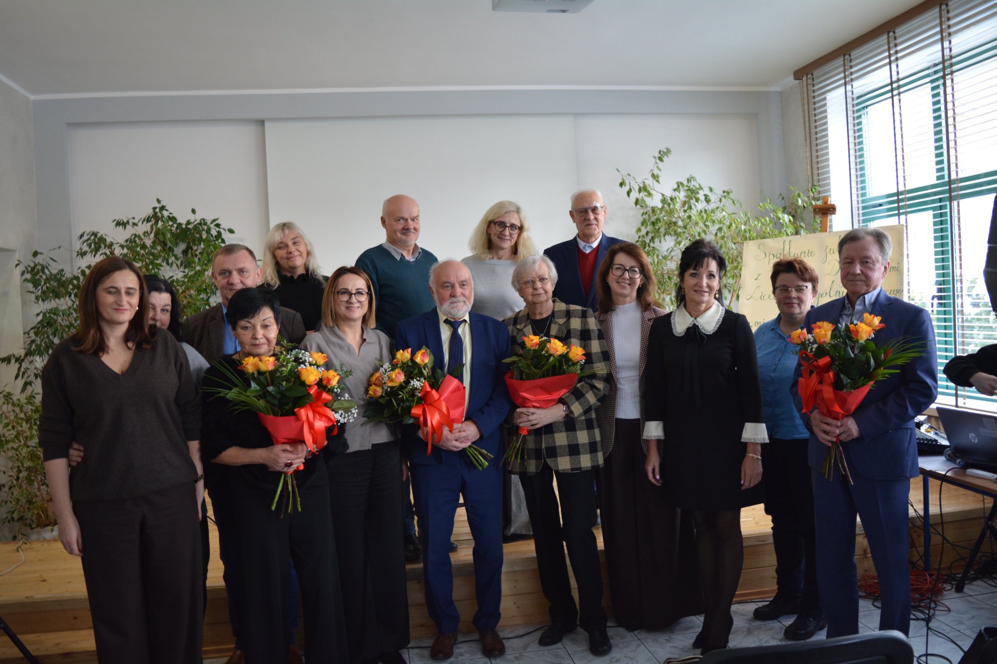 27 listopada 2025 r. zainaugurowaliśmy rok jubileuszowy naszej szkoły. 110–lecie Liceum Ogólnokształcącego stało się piękną okazją do spotkania z byłymi dyrektorami: p. Marią Otroszczenko, p. Ewą Nowakowską, p. Tadeuszem Rutkowskim i p. Markiem Matczakiem. To właśnie wyjątkowi goście tworzyli historię szkoły, do której uczęszczają kolejne pokolenia młodych ludzi. Spotkanie miało formułę wywiadu przeplatanego piosenkami wykonywanymi przez uzdolnionych muzycznie uczniów. Prezentacja multimedialna składająca się ze zdjęć zachowanych w kronikach przybliżyła nam sylwetki zaproszonych gości. Te fotograficzne migawki były impulsem do wspomnień nie tylko dla byłych dyrektorów, ale także nauczycieli. Natomiast dla uczniów stanowiły niepowtarzalną podróż w przeszłość. Podczas spotkania dowiedzieliśmy się, w jakich ciekawych czasach nasi goście pełnili funkcje dyrektorów, opowiedzieli o trudnych decyzjach, ale też przywołali anegdoty i zabawne sytuacje. Byli dyrektorzy przekazali społeczności szkolnej kilka rad: należy mieć odwagę w dążeniu do wyznaczonych celów, być ciekawym świata, stawiać sobie wyzwania i patrzeć dookoła siebie na potrzeby innych ludzi.