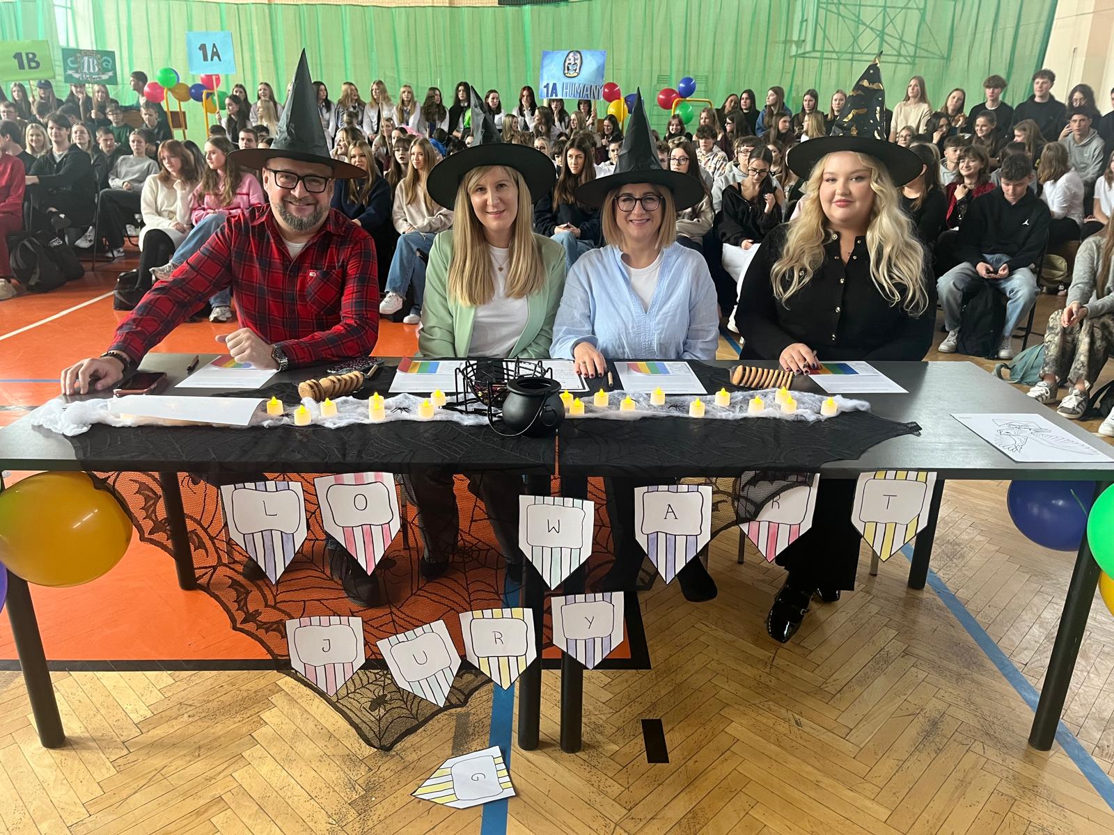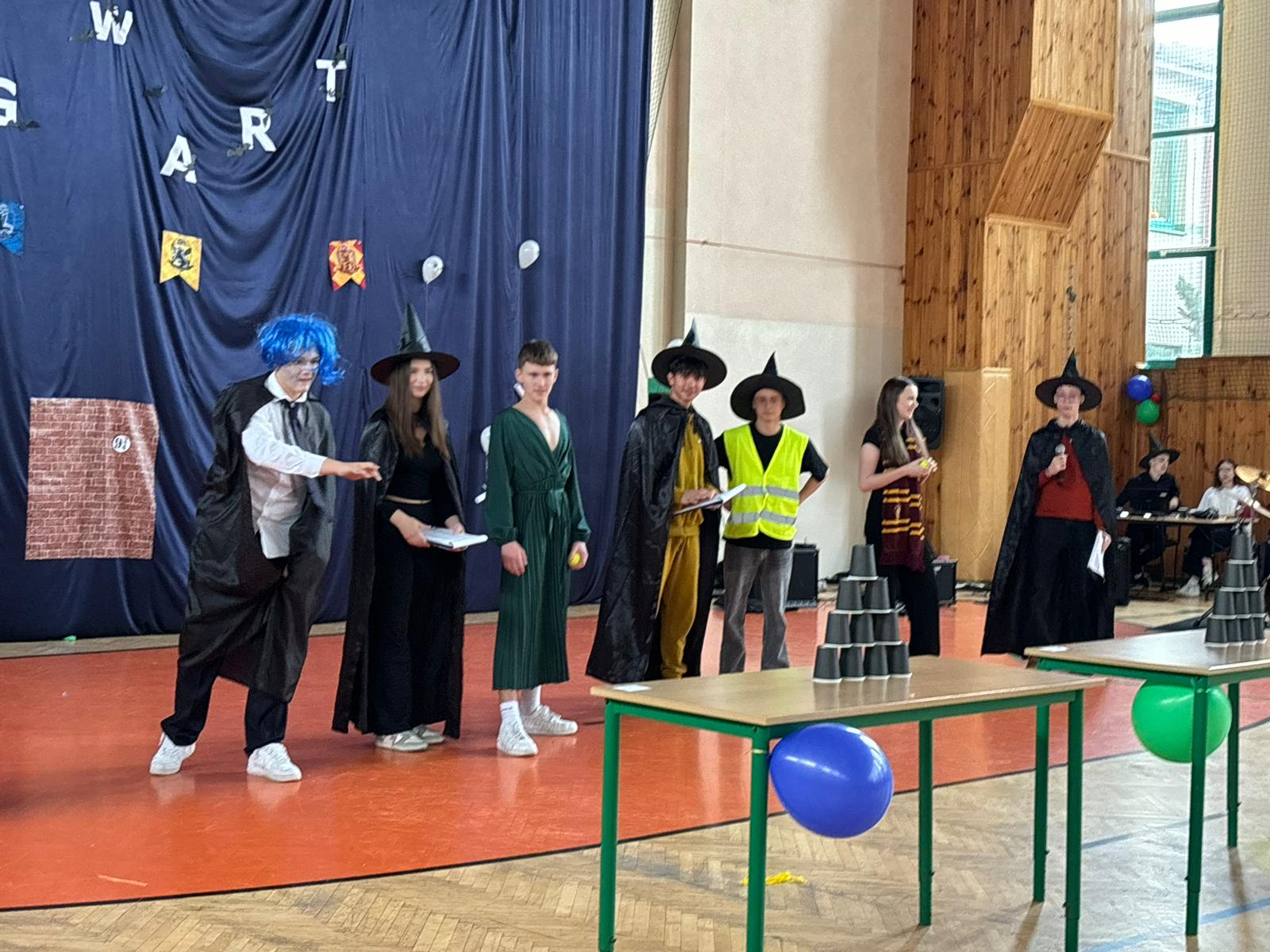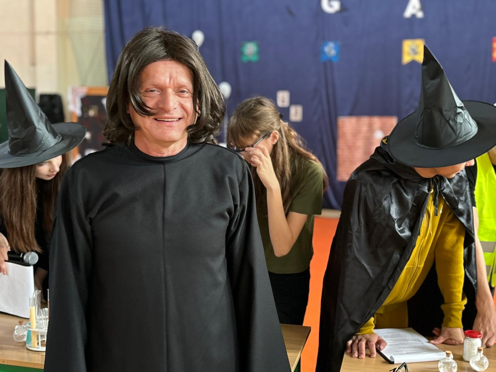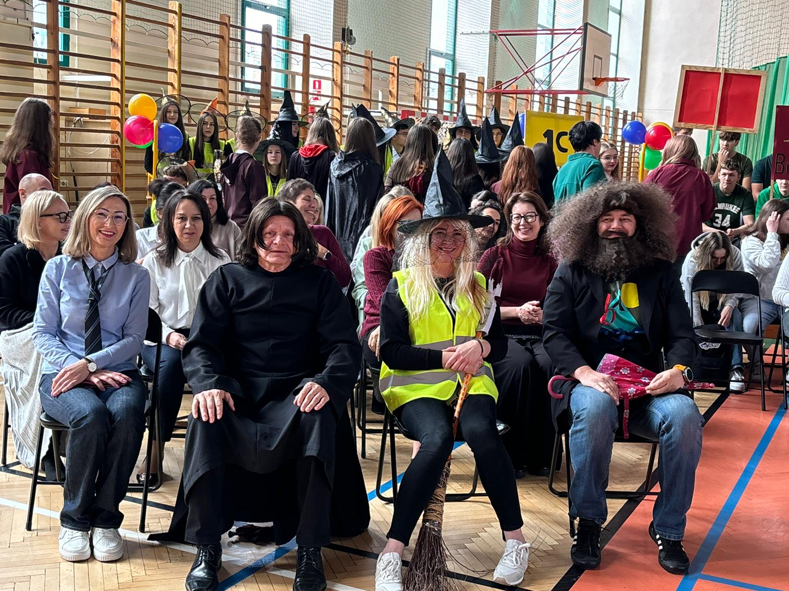Wychowawcy klas, dziś odgrywający z wdziękiem role speców od magii, tak aktywnie włączyli się w przebieg Otrzęsin, że można by pomyśleć, że długo na taką okazję czekali;) Nie no trzeba przyznać, że oprócz tego, że sami się przednio bawili, wspierali swoich uczniów podczas zmagań konkursowych. Zaskoczyli nas wszystkich strojami, rekwizytami, ruchem scenicznym i energią godną młodych czarownic i czarodziejów.