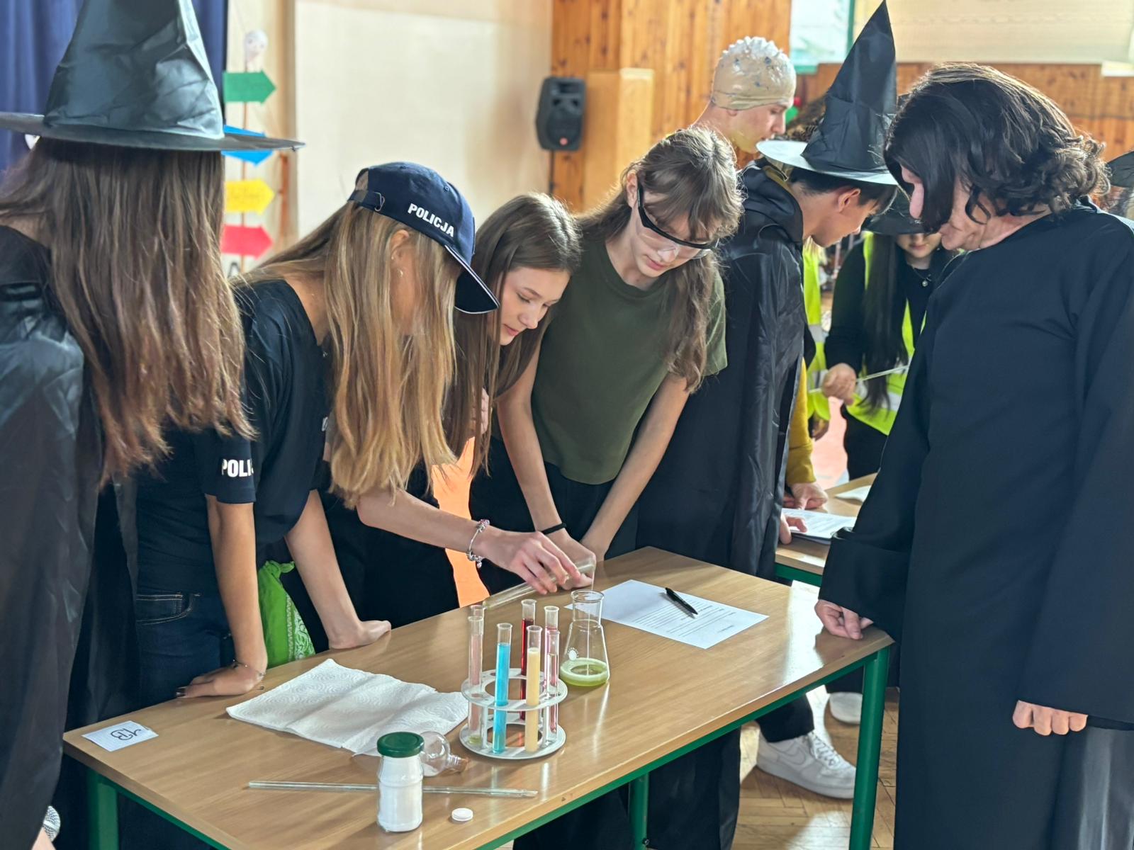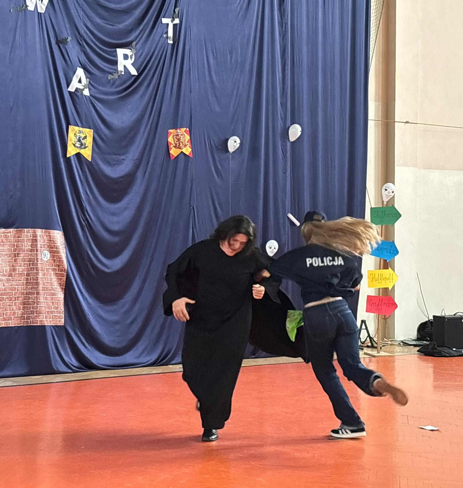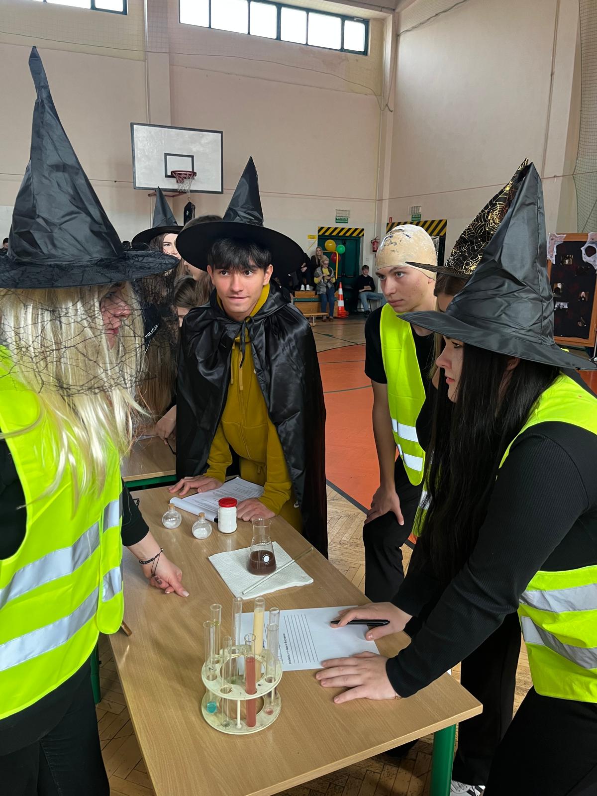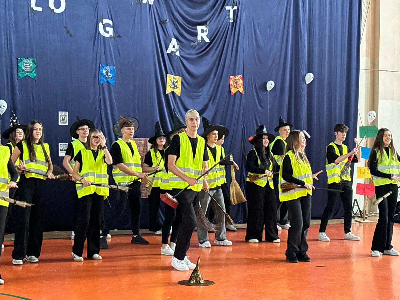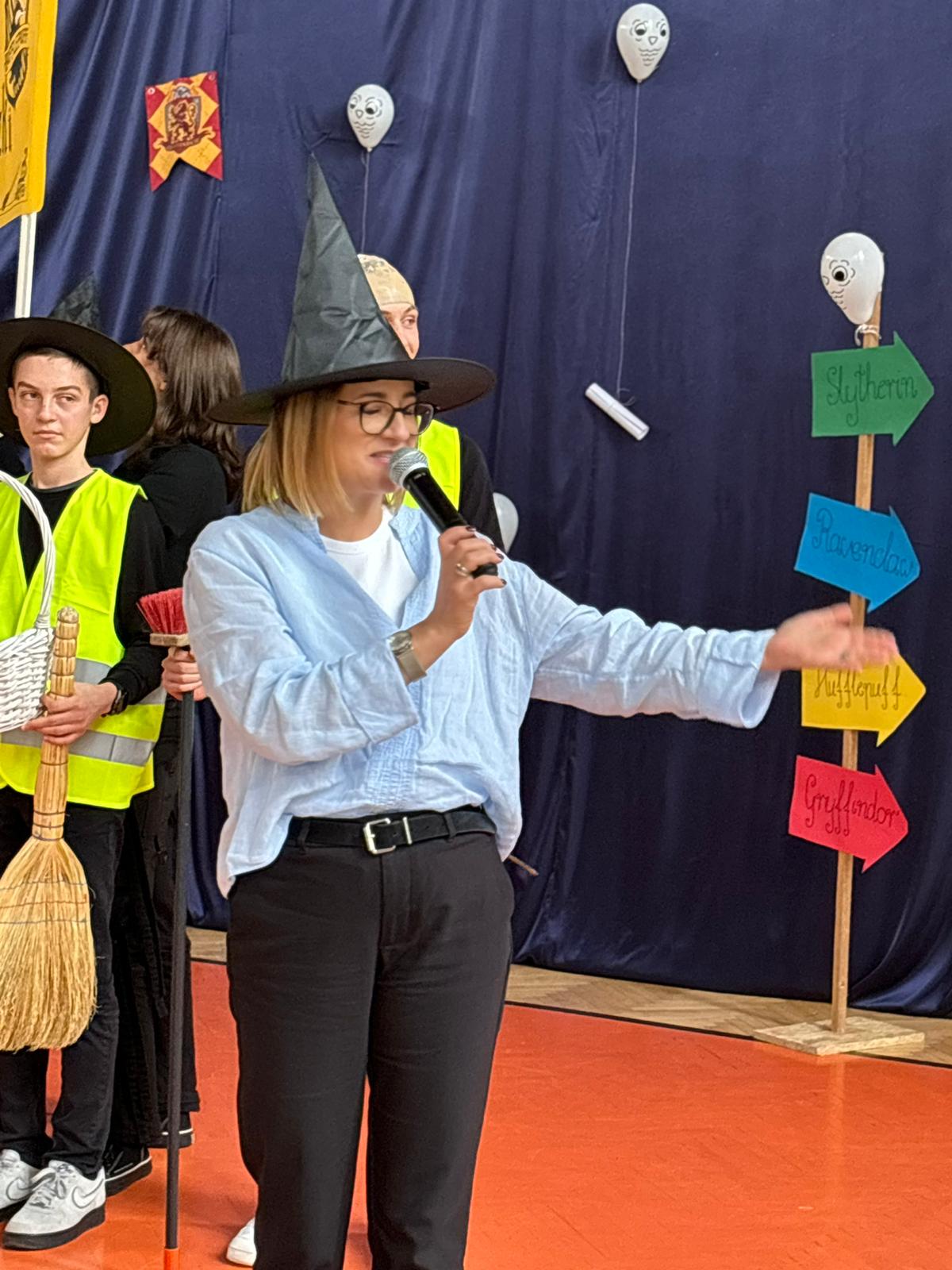 Wychowawcy klas, dziś odgrywający z wdziękiem role speców od magii, tak aktywnie włączyli się w przebieg Otrzęsin, że można by pomyśleć, że długo na taką okazję czekali;) Nie no trzeba przyznać, że oprócz tego, że sami się przednio bawili, wspierali swoich uczniów podczas zmagań konkursowych. Zaskoczyli nas wszystkich strojami, rekwizytami, ruchem scenicznym i energią godną młodych czarownic i czarodziejów.