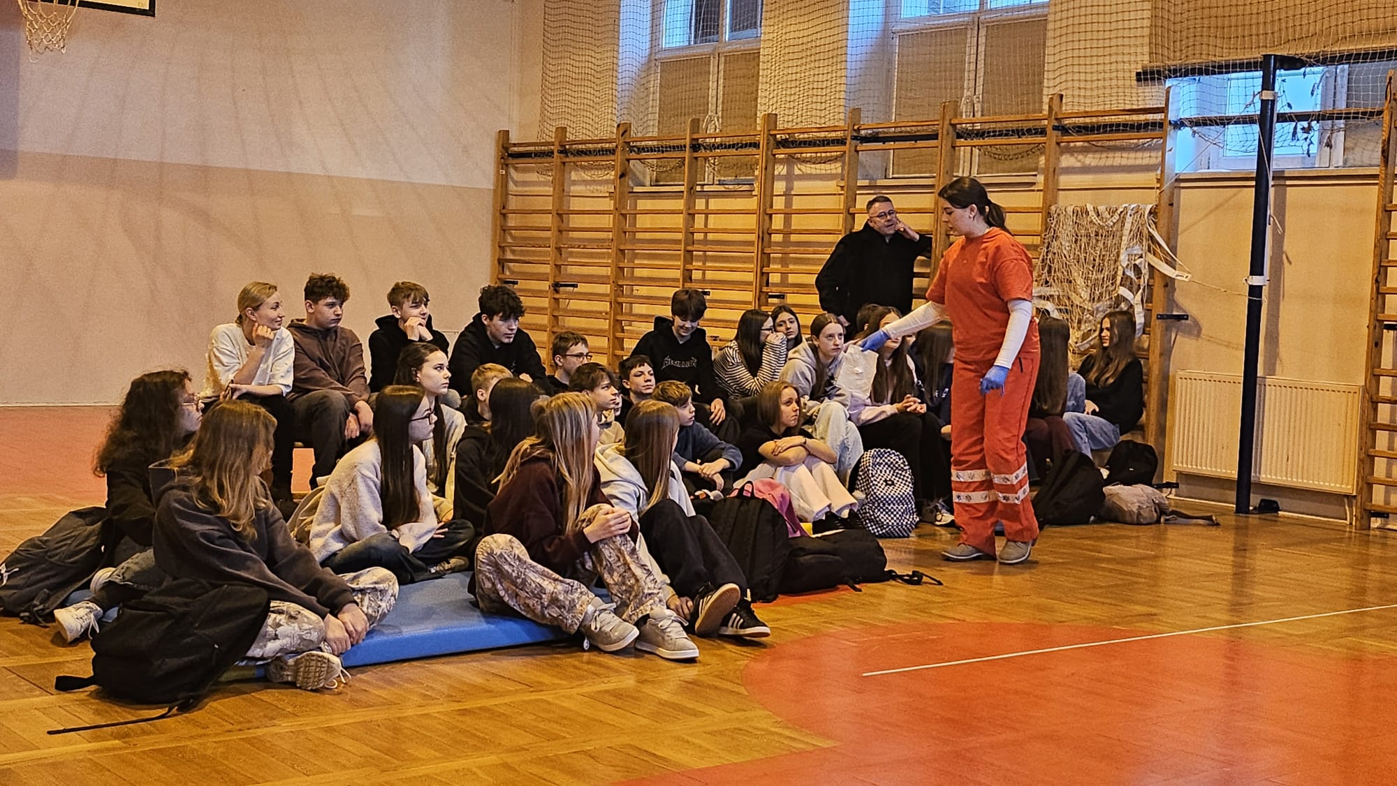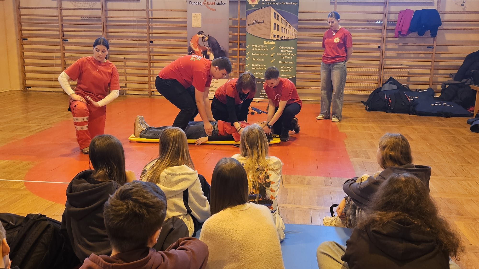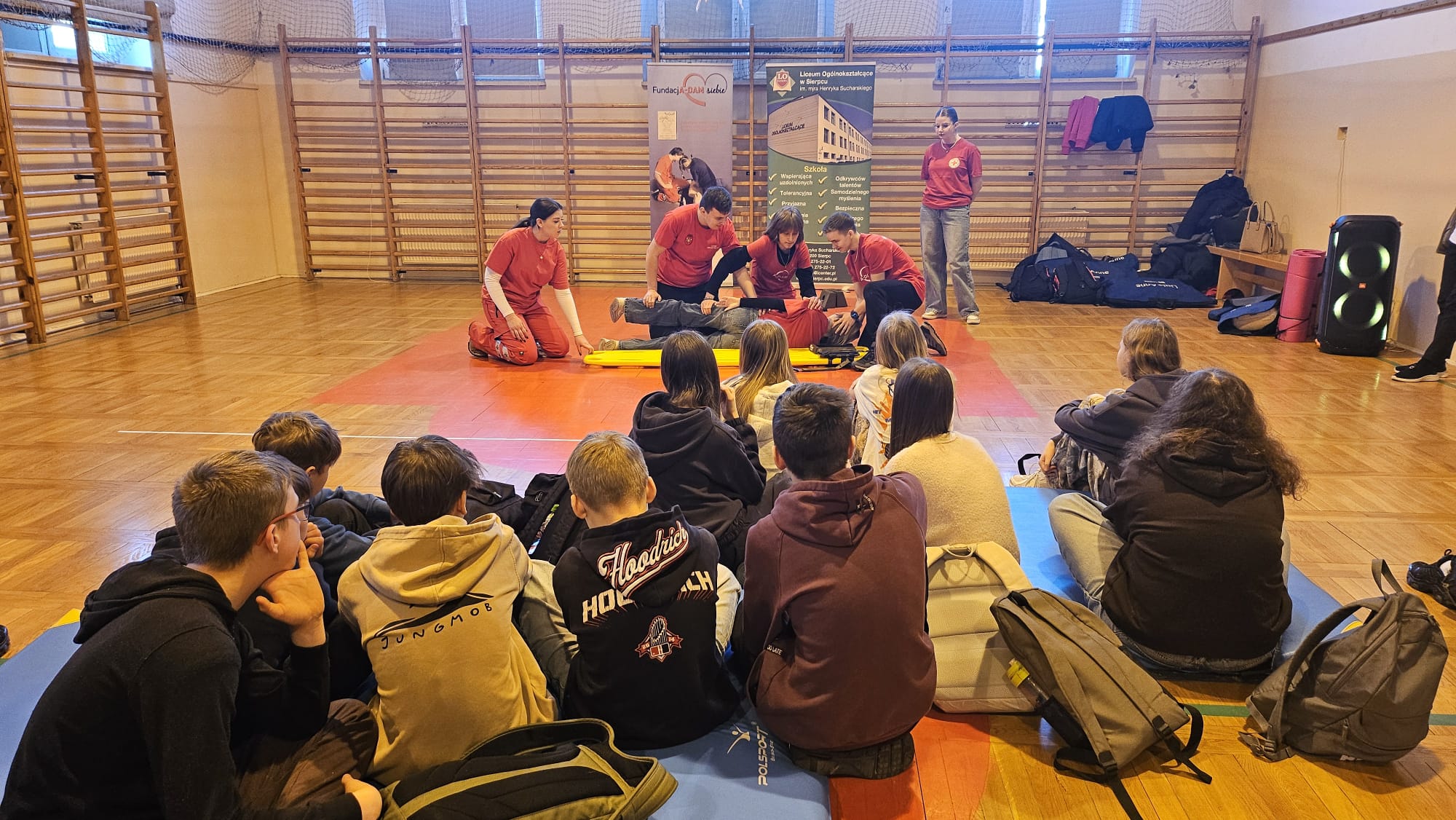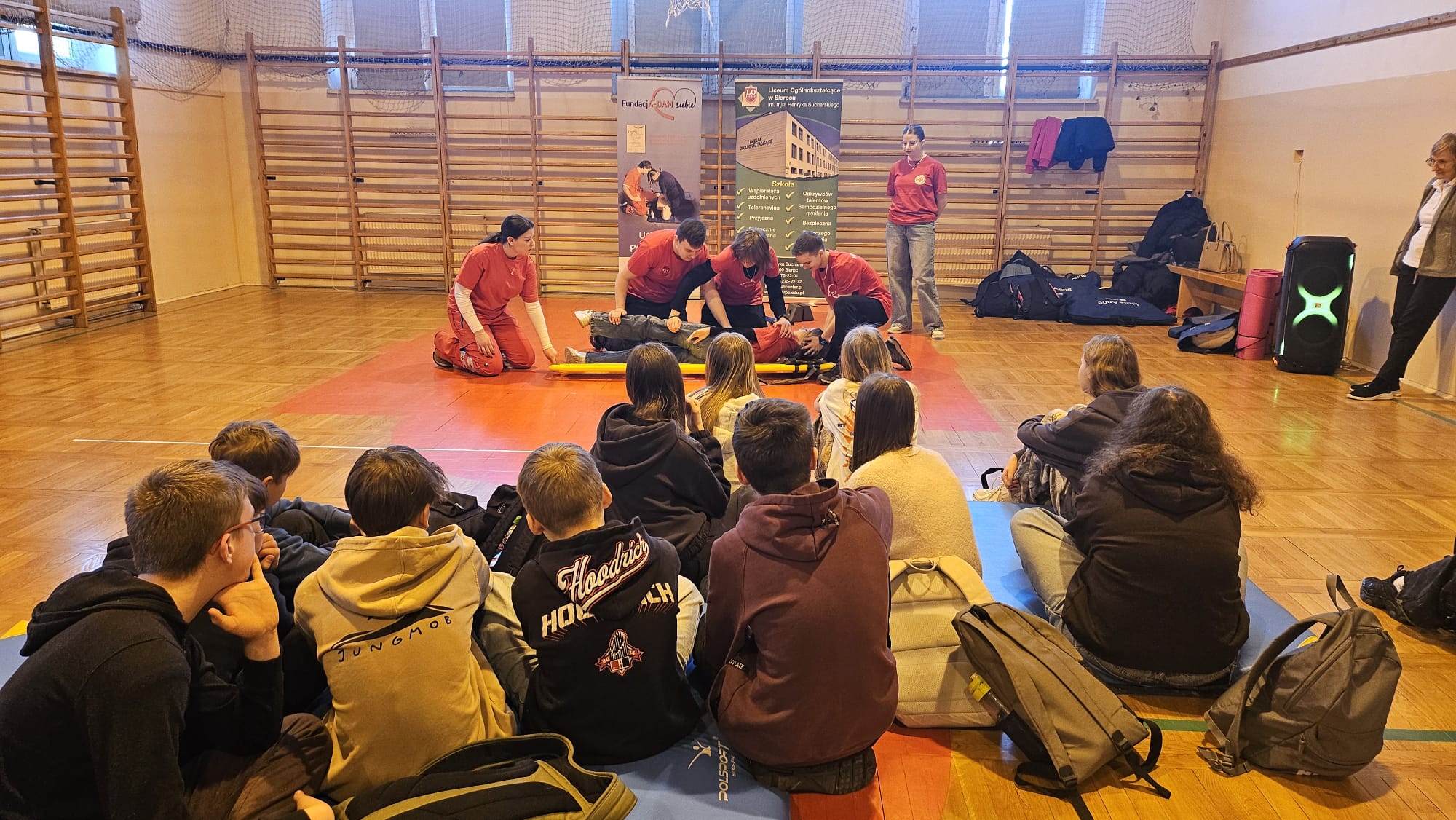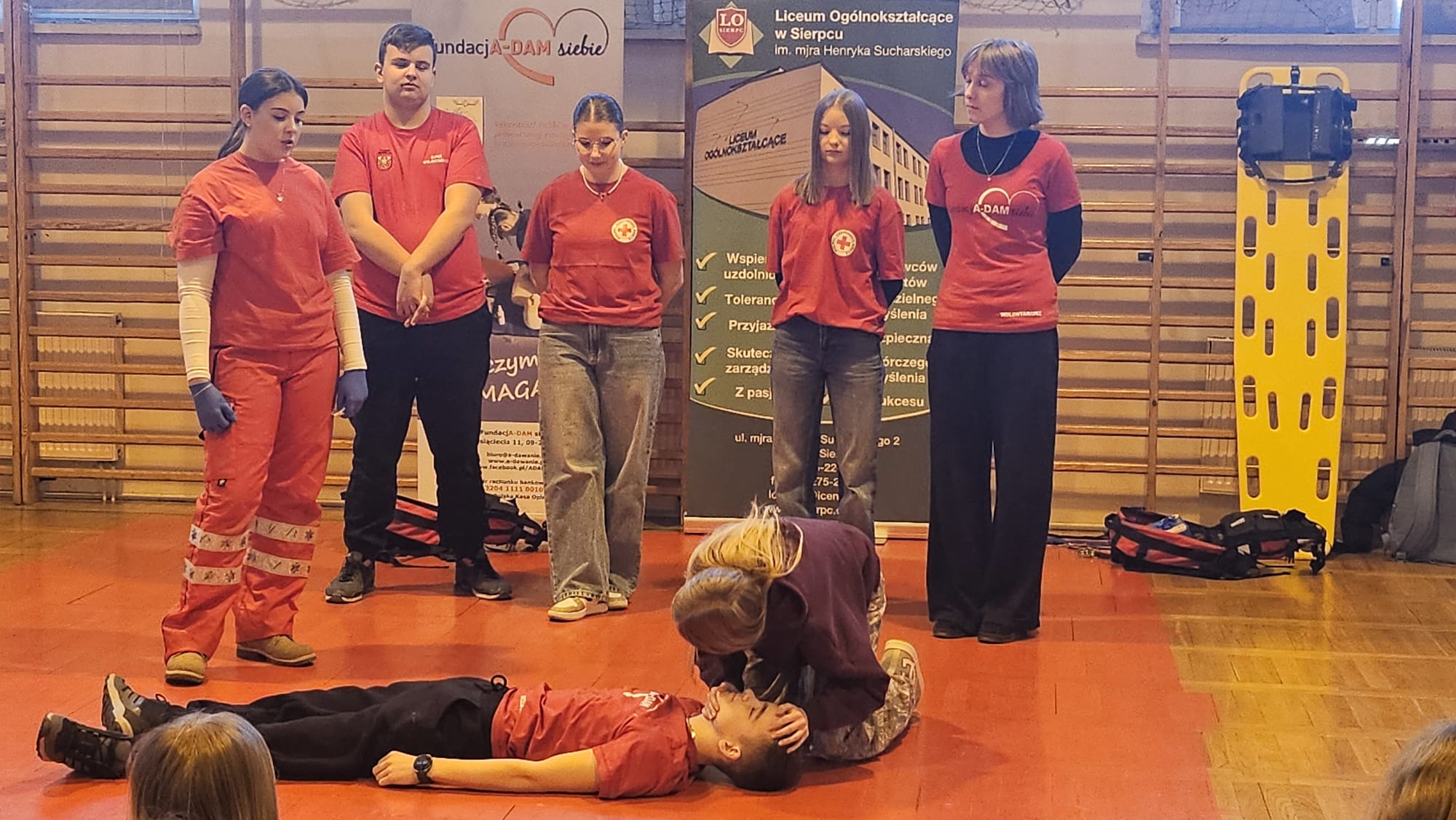 Nasi wolontariusze ponownie biegną z pomocąZajęcia domknęli wspólnym zdjęciem z uczniami szkoły podstawowej i podziękowaniem za spędzony razem czas. Mamy nadzieję, że nasza następna wizyta w ,,Dwójce" będzie równie udana. Ogromnie dziękujemy za zaproszenie, ciepłe przyjęcie i wspólną naukę.