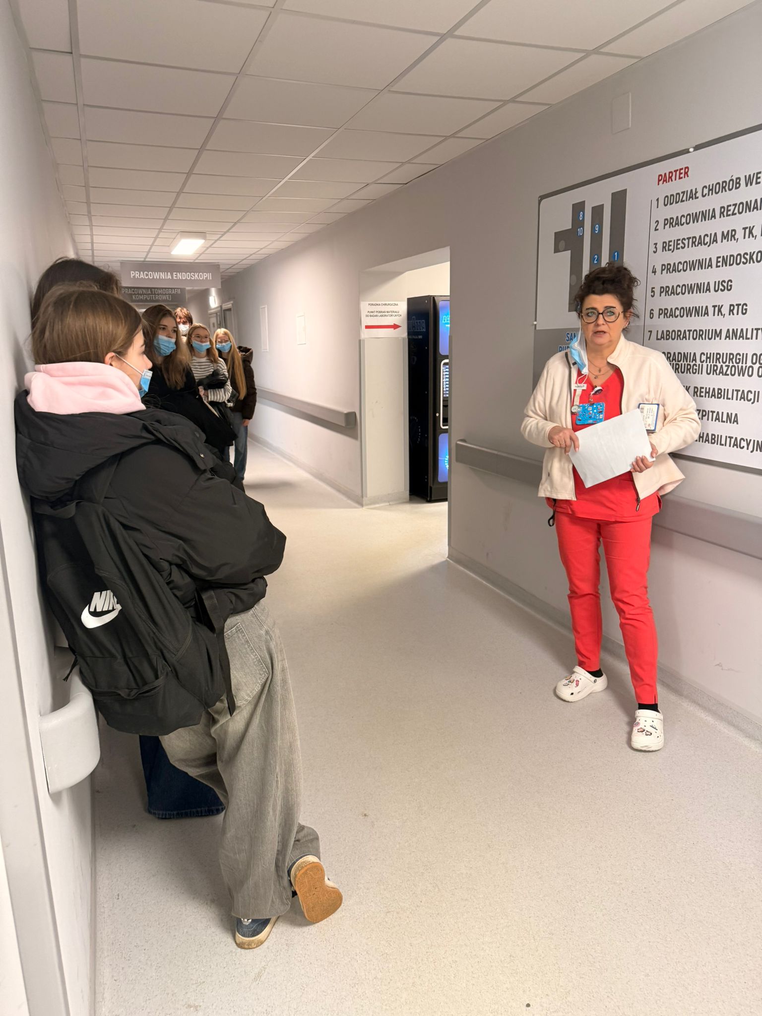 Kolejnym punktem programu była izba przyjęć, w której młodzież poznała procedury przyjmowania pacjentów oraz sposoby udzielania pierwszej pomocy w sytuacjach nagłych. Na zakończenie uczestnicy odwiedzili oddział rehabilitacyjny, gdzie zapoznali się z metodami usprawniania pacjentów po urazach i zabiegach operacyjnych.