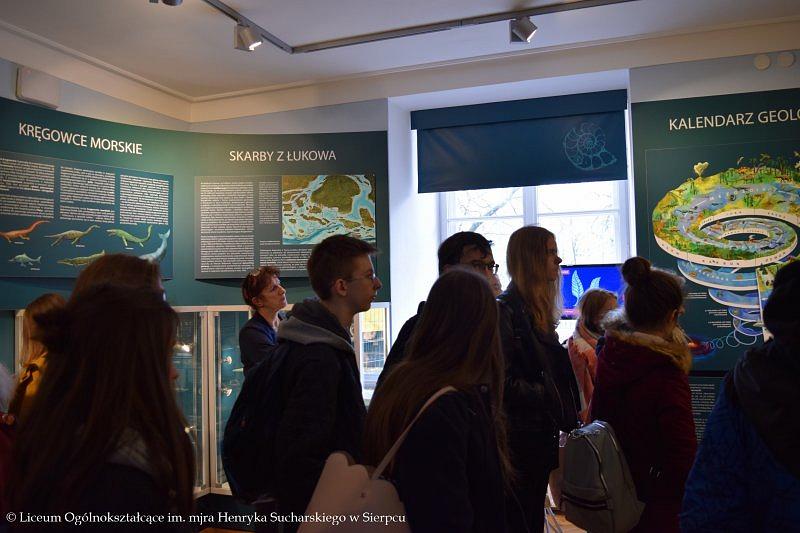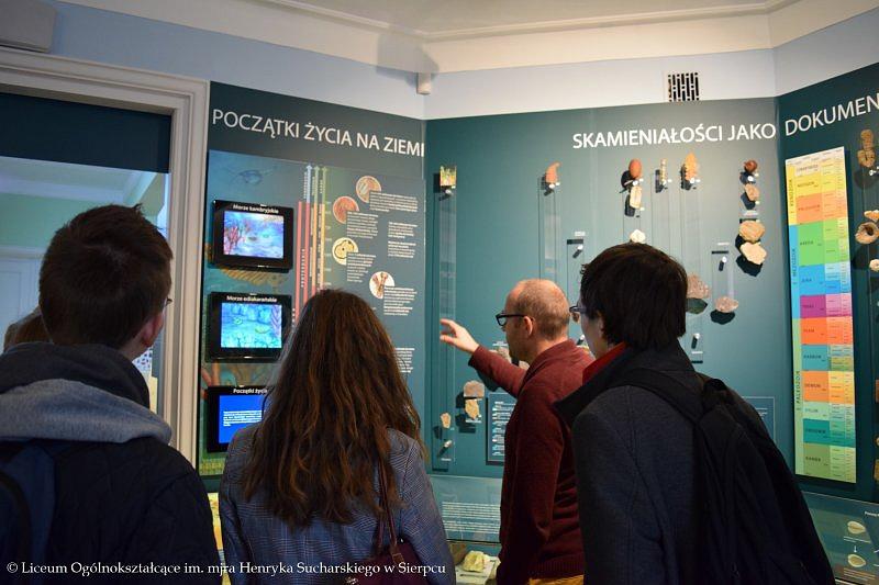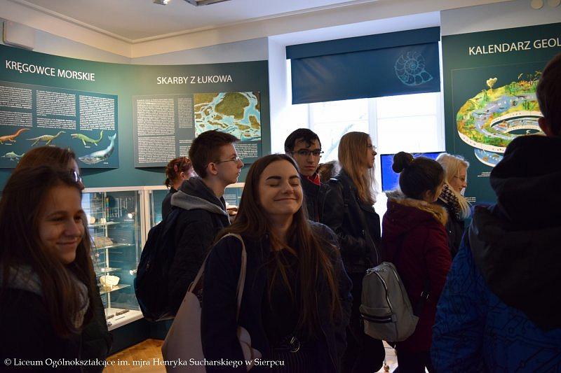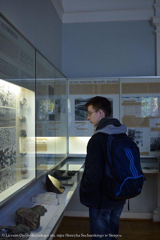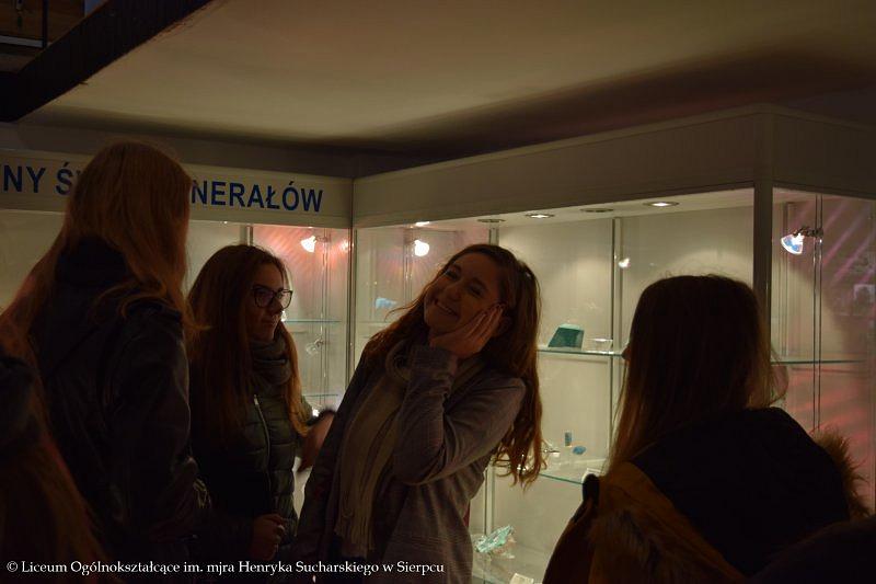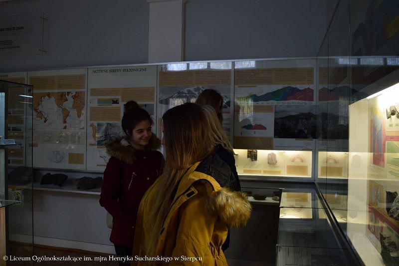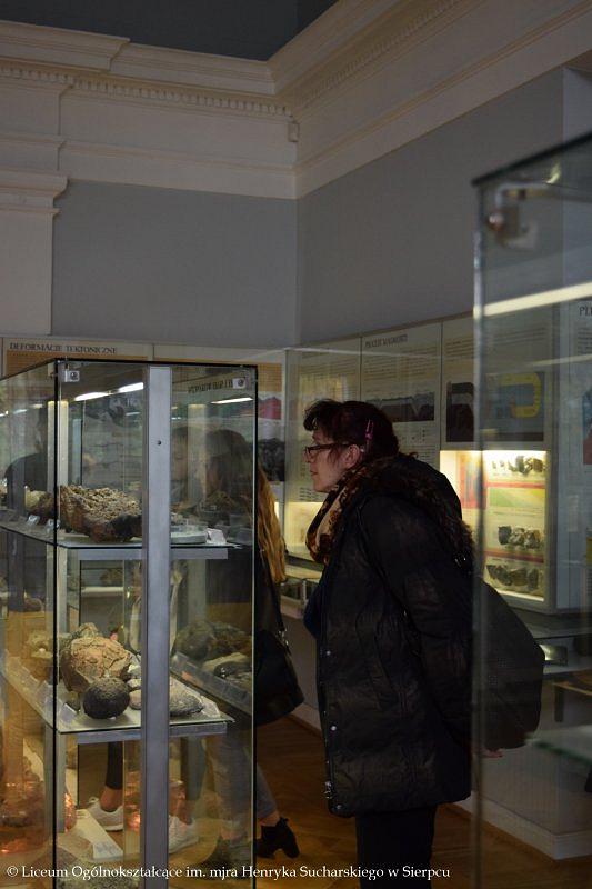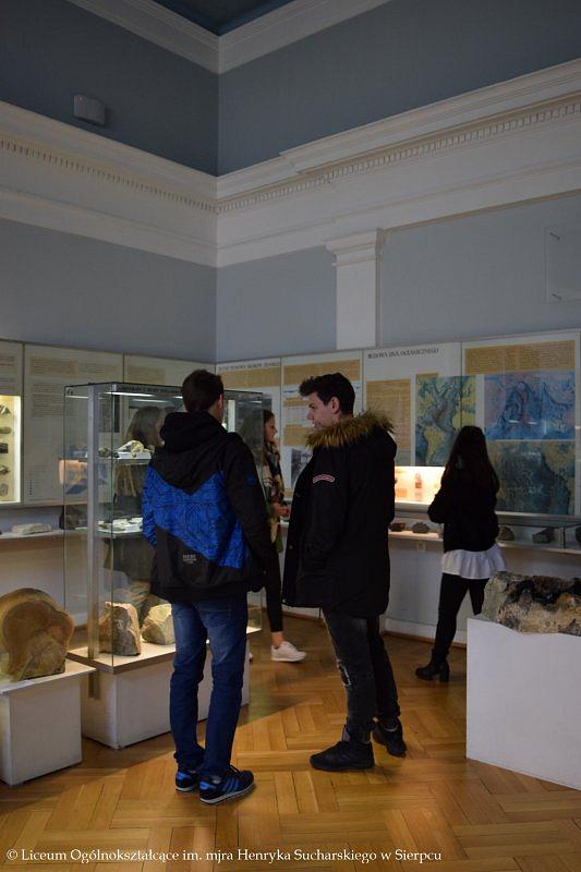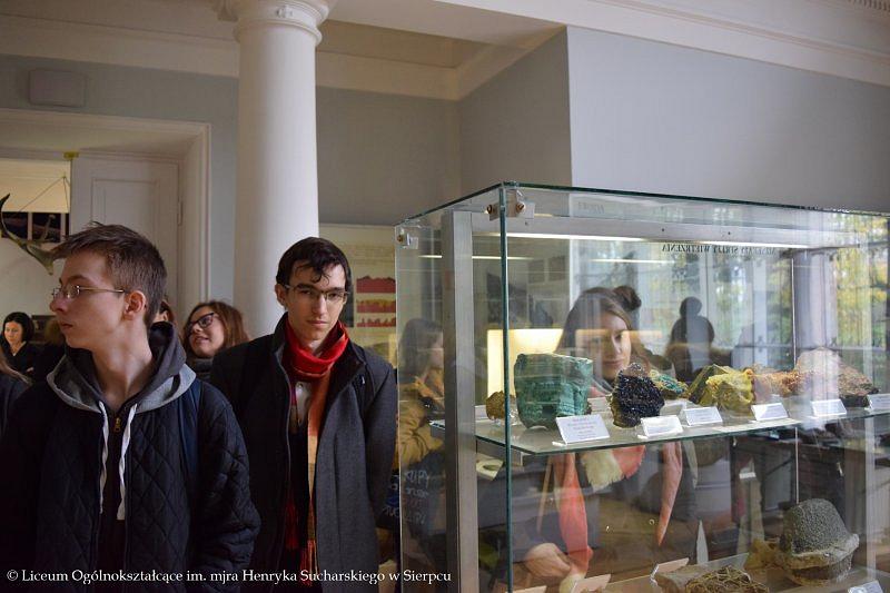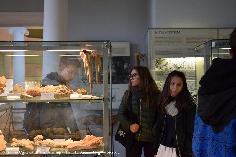 W programie wyjazdu było zwiedzanie Muzeum Ziemi PAN, w którym młodzież obejrzała stałe wystawy ukazujące historię kształtowania się flory i fauny na terenie Polski, ważne wydarzenia z przeszłości, między innymi powstawanie węgla kamiennego, brunatnego czy bursztynu. Licealistom bardzo podobały się zgromadzone w gablotach minerały, które swoimi kolorami przyciągały uwagę i zachwycały oczy. Towarzyszący uczniom przewodnik w przystępny sposób przekazał dużo wartościowej wiedzy, którą będą mogli wykorzystać w przyszłości.