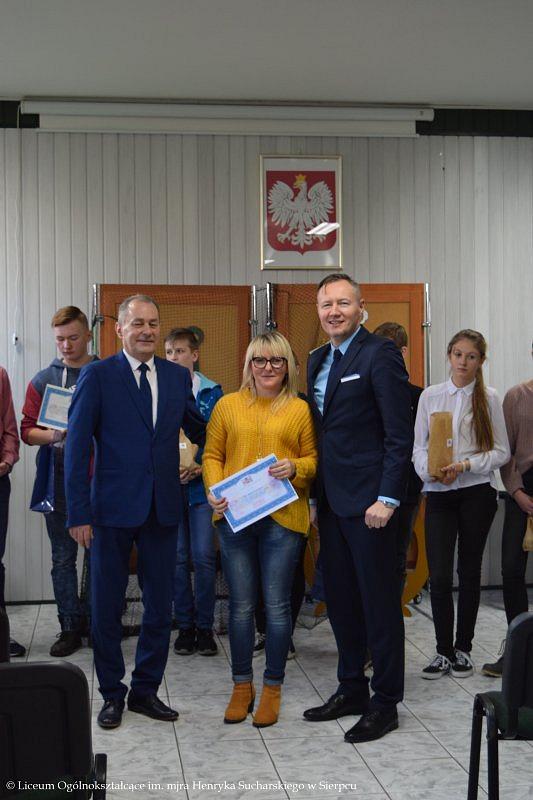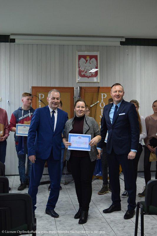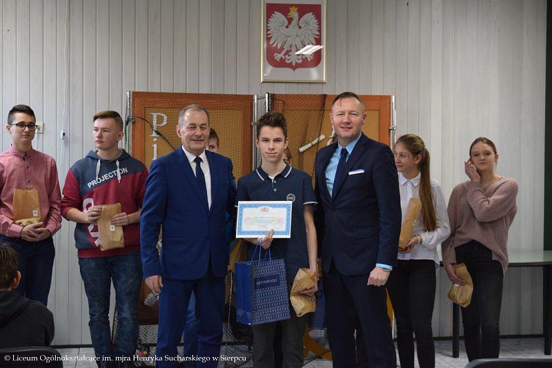 Wszyscy uczniowie otrzymali certyfikaty uczestnictwa, zaś nauczyciele podziękowania, które wręczyli Starosta Sierpecki – pan Mariusz Turalski, Wicestarosta Sierpecki – pan Jarosław Ocicki.
