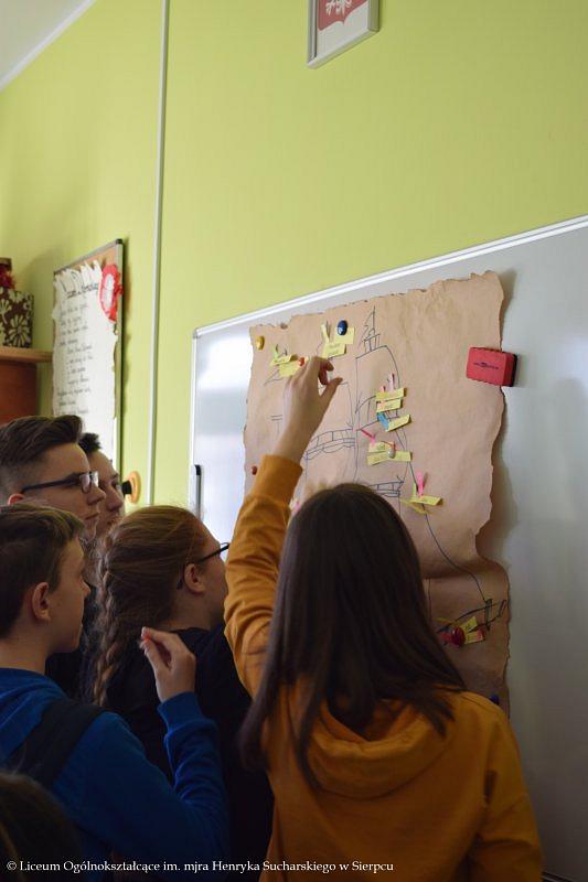 Uczestnicy zabawy zbierali nie tylko punkty za poszczególne konkurencje, ale również elementy szyfru, dzięki którym odnaleźli potem skarb ukryty na terenie naszego LO.