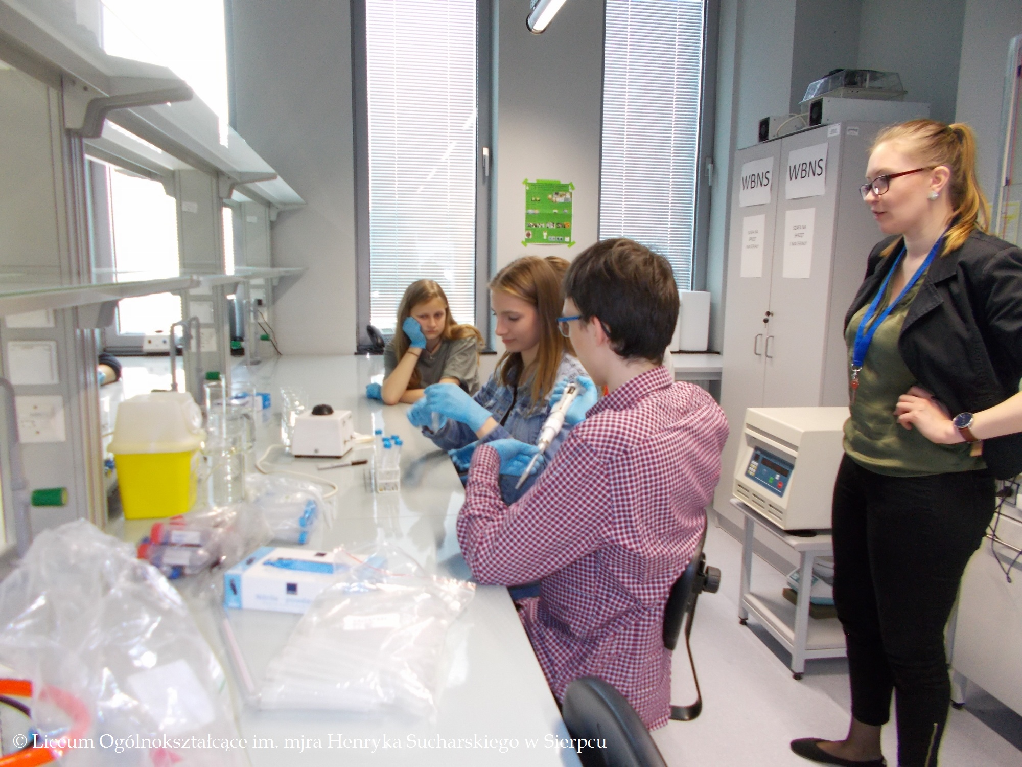 23 maja 2019 r. uczniowie klasy II b wzięli udział w wycieczce naukowo-integracyjnej do Warszawy i Powsina. Głównym celem wyjazdu było odwiedzenie Instytutu Ekologii i Bioetyki Uniwersytetu Kardynała Stefana Wyszyńskiego, z którym współpracuje nasze Liceum. Uczniowie uczestniczyli w zajęciach prowadzonych przez dr hab. Katarzynę Góralczyk nt. „Żywność – dlaczego taka? A jak nie taka, to jaka?” oraz dr Aleksandrę Lisowską-Gaczorek nt. „Śladami naszych przodków – bioarcheologia w dobie badań fizykochemicznych”. Młodzież mogła nie tylko obejrzeć nowoczesne wyposażenie Centrum Laboratoryjnego Nauk Przyrodniczych UKSW, ale również poczuć się jak przyszli studenci, wykonując ćwiczenia.