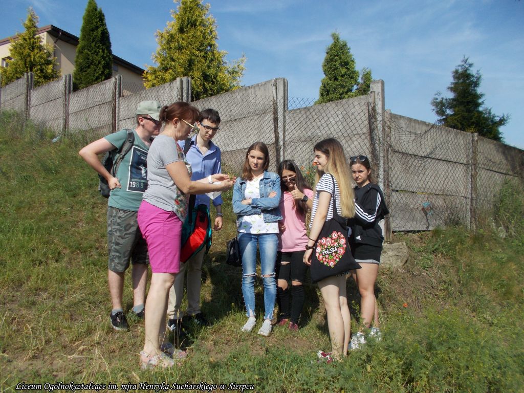 14 czerwca 2019 r. uczniowie klasy II b (profil biologiczno-medyczny) miała zajęcia terenowe. Ich celem było poznanie pospolitych gatunków roślin zielnych oraz praktyczne wykorzystanie przez człowieka. Zwracano również uwagę na podłoże roślin, ich wymagania siedliskowe. Młodzież mogła wykorzystać w praktyce zdobytą na lekcjach wiedzę, która dotyczy charakterystycznych cech pozwalających zakwalifikować rośliny do klasy jednoliściennych lub dwuliściennych. Licealiści kształcili umiejętność oznaczania roślin za pomocą przewodników oraz klucza do oznaczania.
