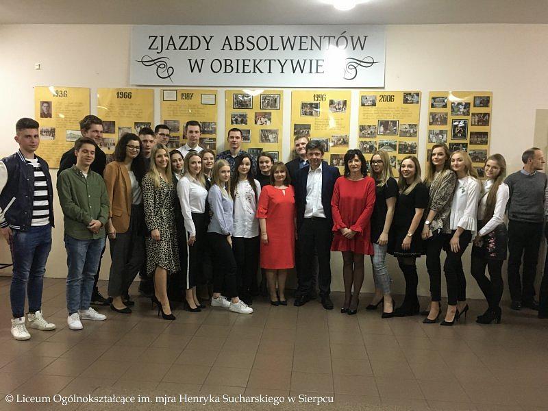 8 marca 2019 r., w Dzień Kobiet, odbyło się spotkanie z dr. hab. n. med. Piotrem Janikiem – znanym i cenionym neurologiem, Absolwentem LO. Spotkanie rozpoczęło się od prezentacji, zawierającej m.in. zdjęcia z czasów kiedy nasz Gość był uczniem liceum. Niespodzianką dla naszego Absolwenta była wizyta jego szkolnych kolegów i koleżanek oraz wychowawczyni pani Ewy Nowakowskiej, wieloletniej dyrektor LO i nauczycielki języka niemieckiego – pani Alicji Kowalskiej. Była to znakomita okazja do wspomnień. Ponadto pan Piotr Janik odpowiadał na pytania uczniów: na czym polega Jego specjalizacja, jakie są zalety i wady pracy lekarza oraz jak kiedyś przebiegała rekrutacja na studia medyczne.
